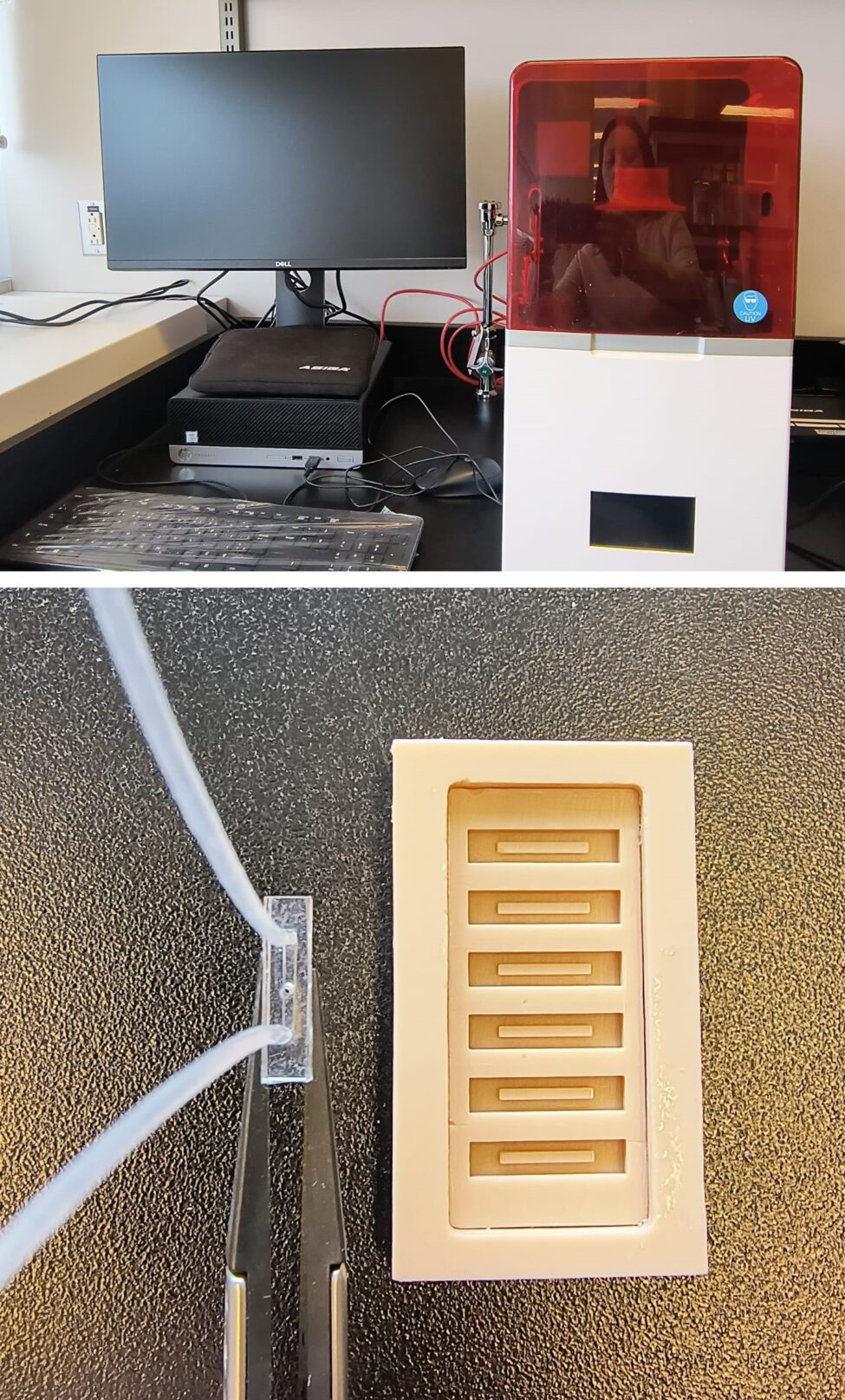 Imprimante 3D haute résolution permettant le prototypage rapide de moules microfluidiques par stéréolithographie et l’intégration du contrôle des fluides.